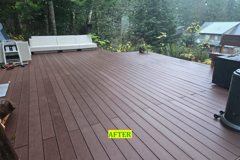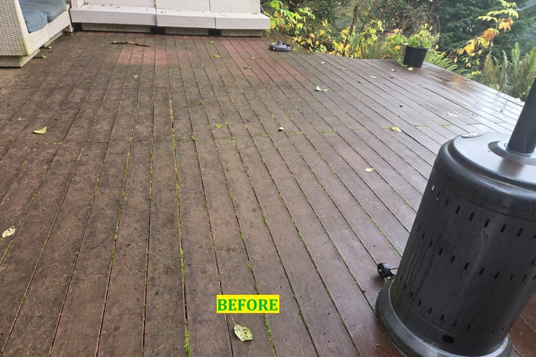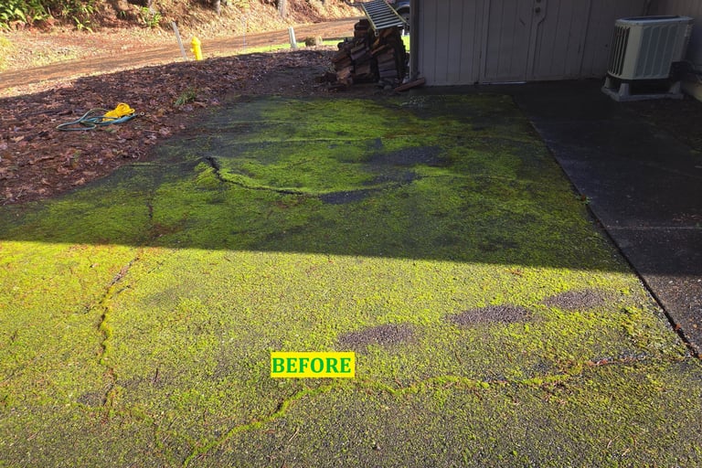 We provide professional pressure washing for hard surfaces including concrete, asphalt, and decks to safely remove algae, moss, dirt, and buildup caused by Pacific Northwest weather. Our process restores appearance, improves safety, and helps extend the life of your surfaces by preventing long-term damage from organic growth.